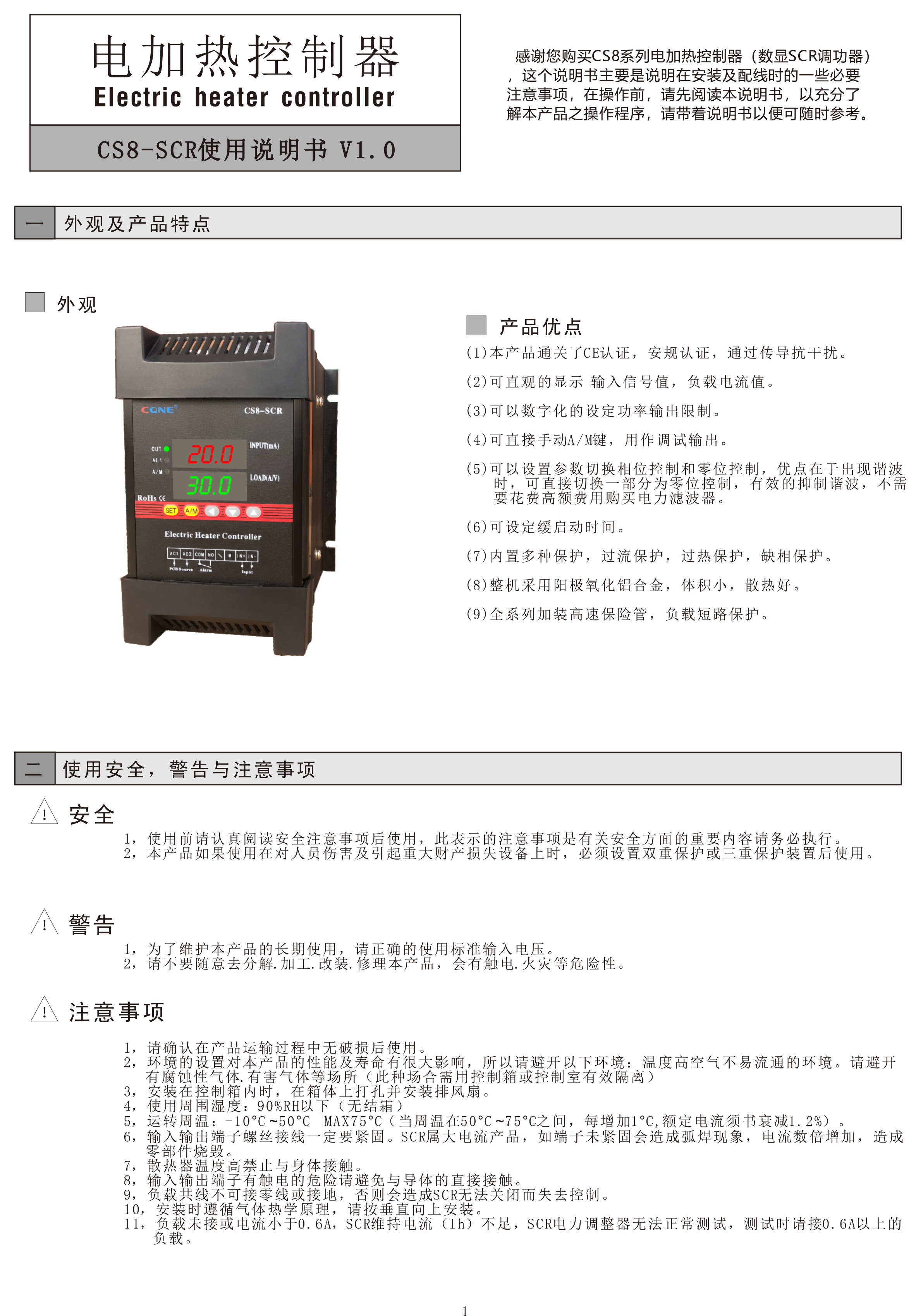 CS8数显调功器40A 60A三相小功率电力调整器